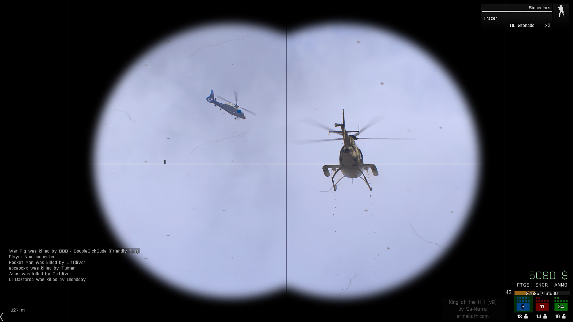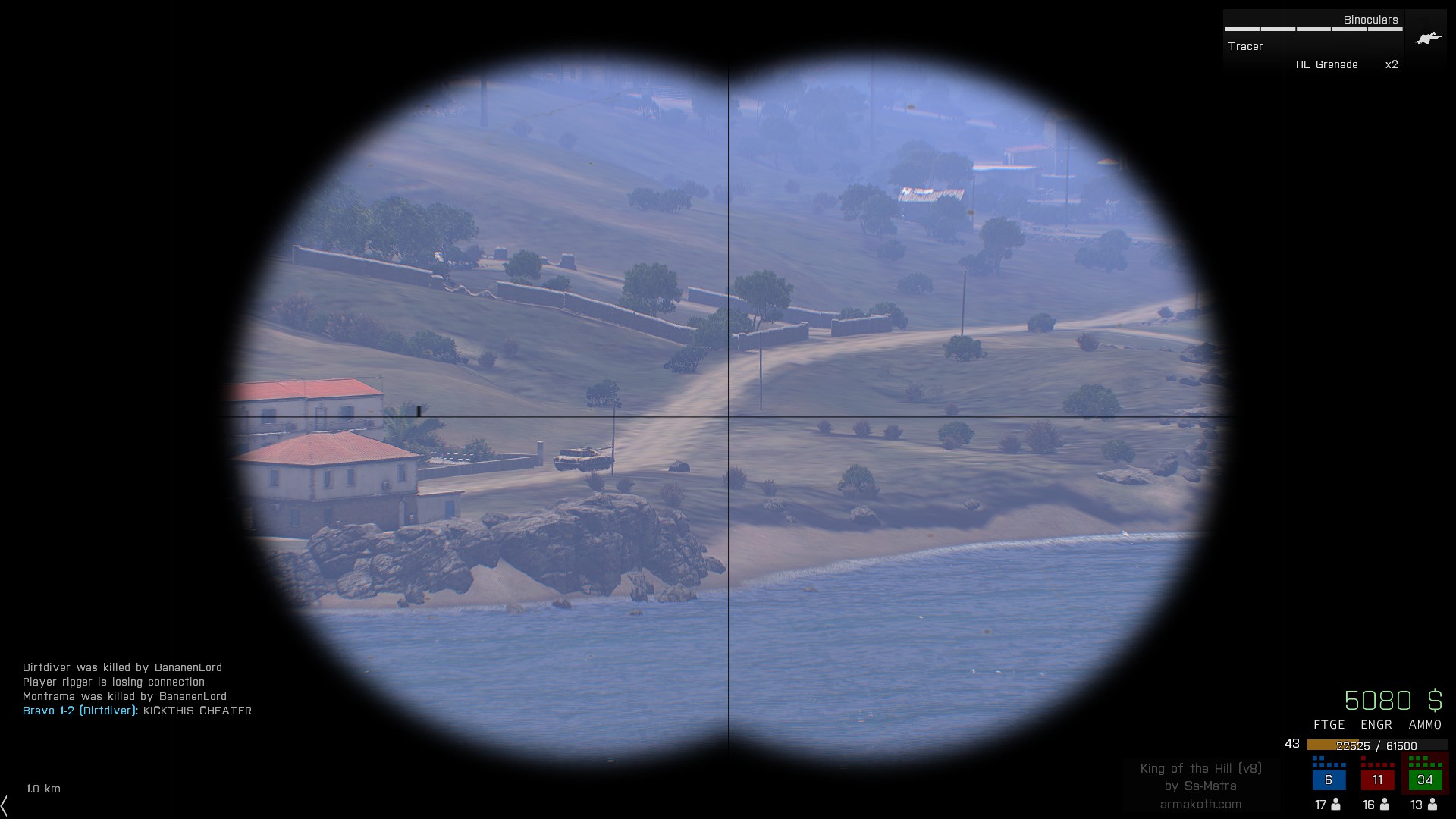 GameKing of the Hill is an "advanced" King of the Hill mission where 3 teams (Blufor/Opfor/independent) are fighting for an area. You'll fight on Altis, the area will change every round so you won't fight the same place!